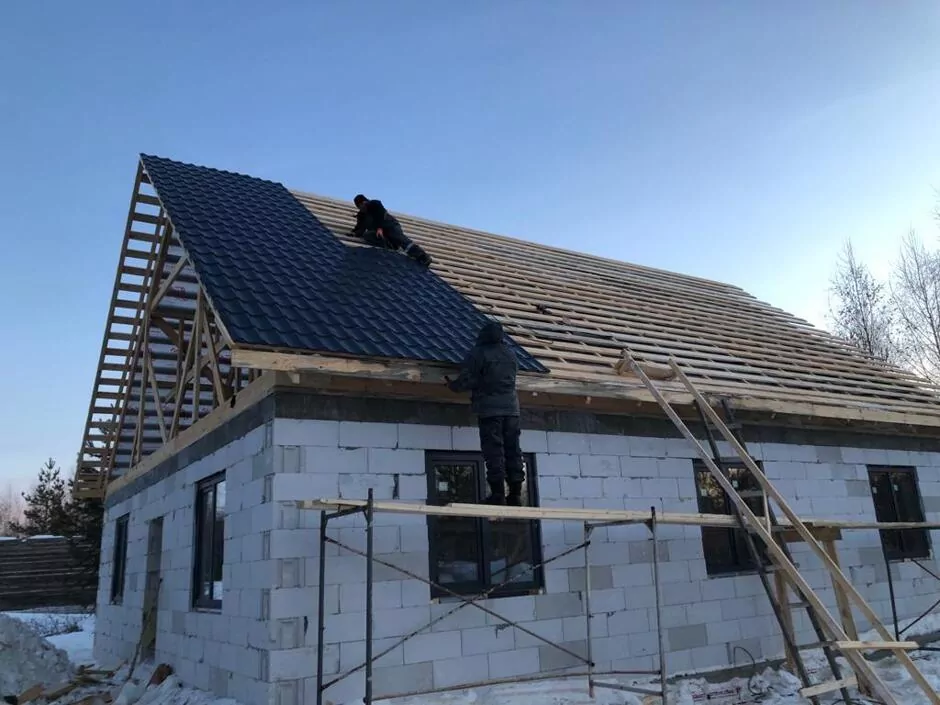 Одноэтажный дом из газобетона. Энергоэффективное и безопасное строение с высокой звукоизоляцией, морозостойкостью и долгими сроками эксплуатации. В таком доме используются армированные газобетонные блоки толщиной 100–250 мм для возведения несущих стен и перегородок. Армирование предотвращает появление трещин и усадку материала.